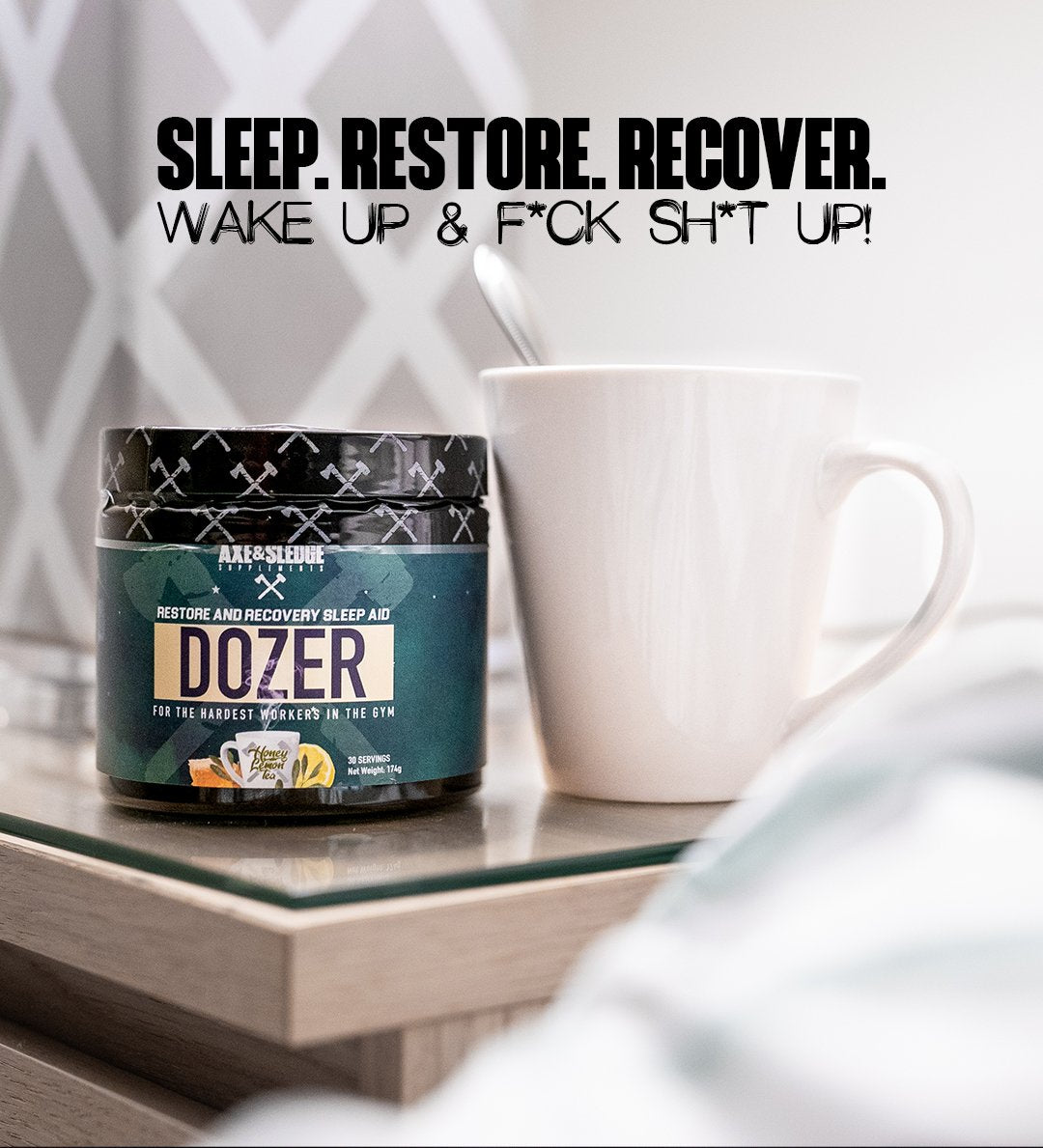 Between hitting the gym, going to work everyday, and the stresses of normal, everyday life, things can get pretty hectic, making it easy to give up a good nights sleep. BAD IDEA!!! When it comes to muscular recovery, day in and day out performance in the gym (and daily life), health, and longevity a great night sleep is IRREPLACEABLE!! Dozer is scientifically formulated to help you sleep, recover, and repair so you wake up refreshed and ready to take the day head on! With ingredients sucha as Ashwagandha, Chamomile Extract, GABA, Passion Flower Extract, and L-Phenylalinine, Dozer will help you fall asleep faster, stay asleep longer, and restore essential nutrients to aid recovery!