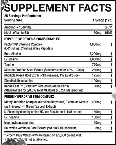 HypeX Xtreme is clinically dosed with science backed ingredients such as Caffeine Anhydrous, Beta-Alanine, Eria Jarensis, L-Theanine, Citrulline Malate, Di-Caffeine Malate, and L-Tyrosine to deliver intense and long lasting energy without the dreaded mid or post-workout crash so you can attack every workout at the highest level, boost mood and mental focus for incredible mind-to-muscle connections, elevate endurance and overall workload capabilities so you can push longer and harder every workout, and improve overall athletic performance so you can perform at your peak ability every workout!