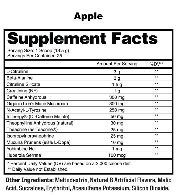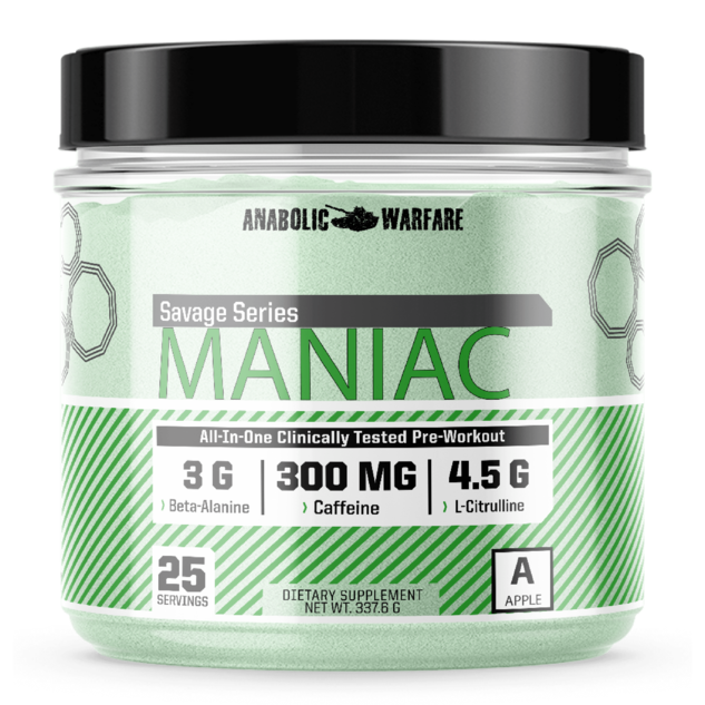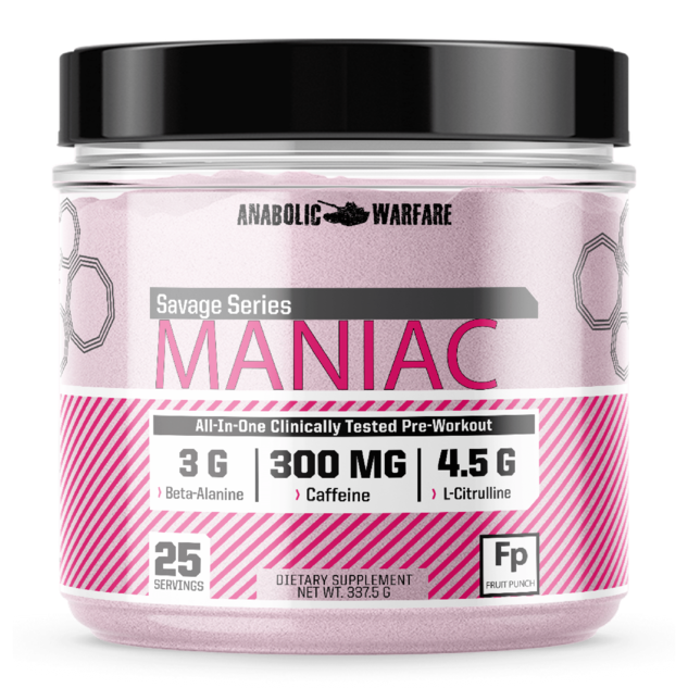 The transparent supplement facts spell it out. Maniac is packed with 14 of the best raw ingredients on the planet to enhance performance, pumps, strength, focus, thermogenesis, energy and hypertrophy while training.