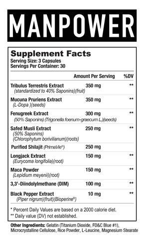 Created specifically for the hardest workers in the room, Manpower from Axe & Sledge is the go-to product for those who are looking to boost their testosterone levels naturally. Manpower contains nine quality ingredients that have been proven to raise testosterone and enhance libido, allowing you to build more lean muscle mass while increasing power, strength, and stamina. If you’re experiencing low testosterone, then Manpower is the solution you’ve been looking for!
