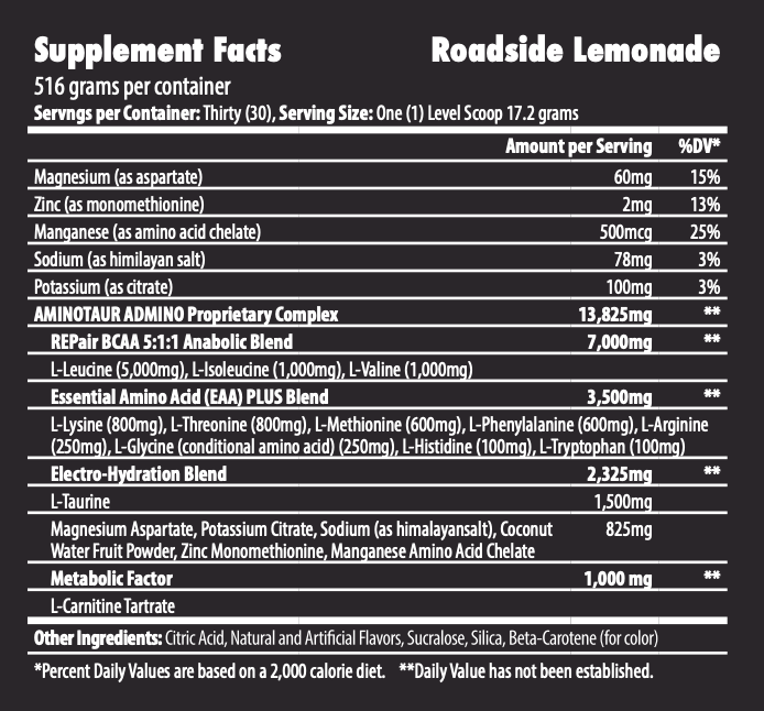 Announcing Aminotaur Essentials! So what sets Aminotaur Essentials apart from the rest of the pack? Aside from the astonishing 11.5 grams of aminos per serving, Aminotaur is loaded with a potent 5:1:1 BCAA ratio lead by 5 grams of Leucine per serving! Now, why is this significant? Because, Leucine is the key to muscle building because your body uses Leucine to activate Muscle Protein Synthesis and muscle cells, which supports muscle building and repair. Research has determined that Leucine is responsible for initiating the muscle recovery process after training. In other words, Leucine helps the body stop breaking down muscle and start to rebuild it. Finishing up this massive amino complex is 3.5 grams of Essential Amino Acids to further enhance muscular recovery, endurance, and increase muscle protein synthesis. Just the sheer amount of aminos in Aminotaur alone makes this a muscle building and repair powerhouse, but we took it a step further and added an Electro-Hydration Blend and backed it up with a 1 gram hit of L-Carnitine Tartate to assist in force development, recovery between sets, muscle contraction quality, and boost overall athletic performance. Aminotaur is an athlete's dream formula allowing you to reach peak performance each and every workout, along with optimizing muscular recovery!